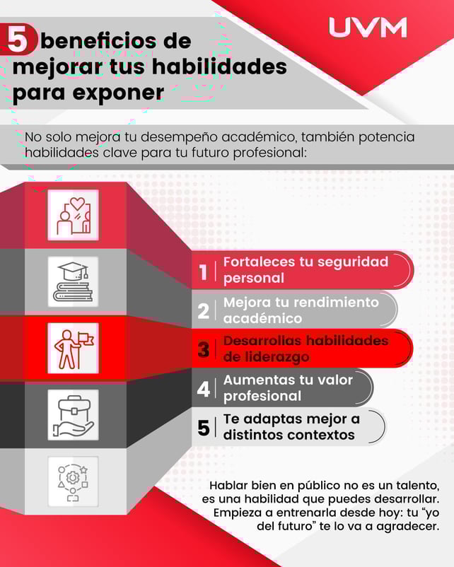 Saber hablar en público es una habilidad que te acompañará toda la vida. No importa si estudias ingeniería, medicina, diseño o marketing: comunicar tus ideas con claridad y seguridad siempre será una ventaja.